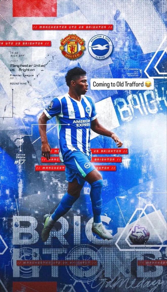 巴莱巴发布对阵曼联的赛前海报并配文‘来到老特拉福德’,随后删除